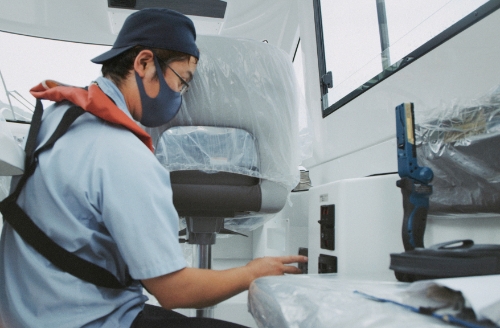 それを判断する知識がなければならない。以外に簡単に原因が分かる時もあれば、どうしても分からない場合もある。試行錯誤を重ね、時に失敗しながら、周りにも協力してもらい、一つ一つ解決していく。難しいからこそのやりがいでもあり、自分自身の自信にもつながると思い取り組んでいます。何より、一番は天草から送り出した船が、お客様の手に渡って何もクレームがなくて喜んでもらえる。また次もこの天草の船買おうかなっていうそういう風になってもらうのが一番いいことだと思います。